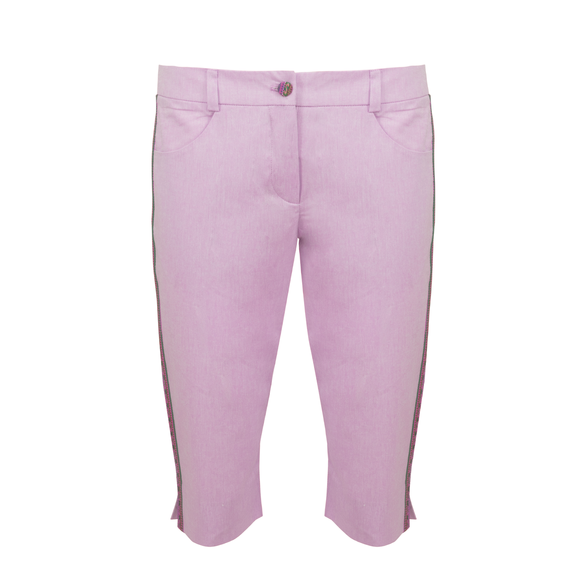 Lilac Cotton Capri Trousers With Colourful Trim